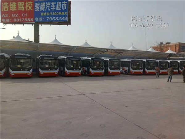 膜結(jié)構(gòu)充電樁,建設(shè)單位,保定市榮清國控集團(tuán)有限公司,地點(diǎn),交通運(yùn)輸管理站,本工程采用鋼材規(guī)121✘3.5行架立柱,114✘4 89✘3.5行架梁,膜布PVDF1100克刀掛工藝,膜布拉力5200牛,膜布特點(diǎn),拉力強(qiáng),耐候性自潔性高,持久耐用.
